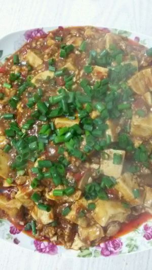 热锅冷油,下如肉末煸香焦脆一到二分钟,接着姜蒜适量加入一汤匙郫县豆瓣酱,细细的辣椒粉一小勺,超出红油,注意放入豆瓣酱和辣椒粉的时候,小火煸炒一分钟,加入小饭碗2碗水……大火熬煮3分钟,趁这个时间,红薯粉一汤匙加入3汤匙水,嫩豆腐洗干净,直接拿刀放在手上切块,可以大块点,嫩豆腐比较容易碎……煮2分钟,放入适量鸡精,花椒面,香菜葱沫……大火沟芡……装盘……喜欢吃辣的,可以在炒酱的时候加入点干辣椒 我家老头子喜欢一盘饭浇上点麻婆豆腐……盖浇饭……美美的香香的,最是适合2人懒人饭……方便快捷哈哈!