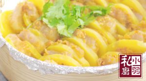 出锅撒点香菜就可以开吃了,一定要粉蒸肉和红薯一起吃,那味道真的是美极了。你还可以把五花肉换成排骨,也很好吃呢。