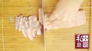 先将五花肉洗净切薄片,拌上生抽,盐,胡椒粉,料酒后腌一小时。
