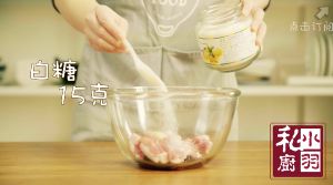 用手抓匀,让每片肉都均匀的沾满米粉和调味料。