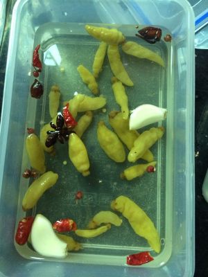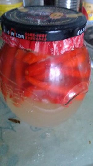 把泡椒加凉白开加调料全部调好 可根据自己得口味调味道