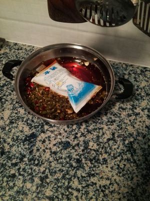 将醋和糖酱油盐加些水一起入锅里煮开,关火后放少许味精,凉一会加冰袋使其迅速冷却。将泡椒与红椒切碎(不用很碎),蒜切片一起加入糖醋水里
