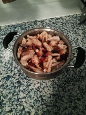 水沸后放入凤爪,小火十分钟,注意看着,别煮烂了。