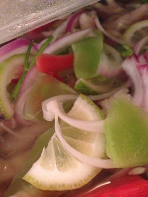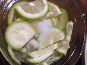 准备一个小碗,柠檬切片,加盐,加水,放一旁等待。需要说明的是没有柠檬也可以加白醋,量大概是半瓶,加水稀释,加盐。
