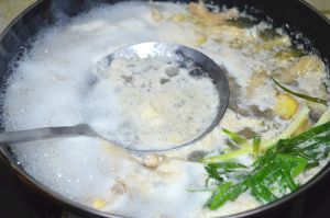 大火煮开后及时撇去浮沫;(我煮了大约10分钟,不要煮的时间太长,不然吃的时候没什么嚼头,就不劲道了)