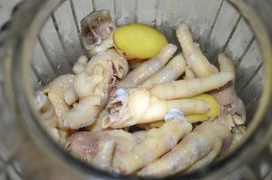 .把鸡爪放进去,方适量盐和姜片,放入冰箱冷藏一晚上即可