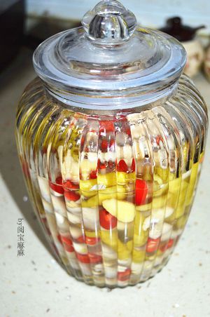 泡椒准备了一瓶,这是部分,想吃辣就把泡椒切开,不想那么辣就保持原状,泡椒的水别丢了,加到料里面很不错,酸辣的哟~