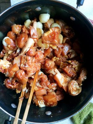 鸡块洗净,加盐、料酒、老抽、糖腌制4个小时。