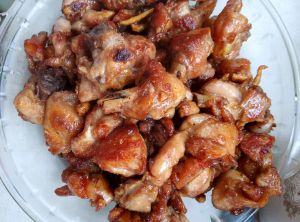 捞出是时使用大火逼出油分,炸好的鸡肉就是这个样子的。