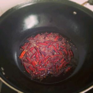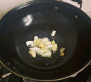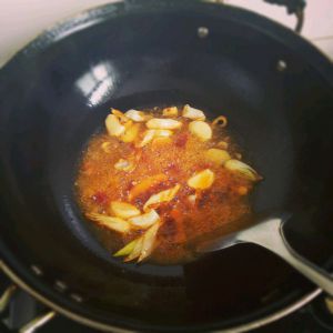 下葱姜丝干小米椒段和一半的蒜蓉翻炒几下