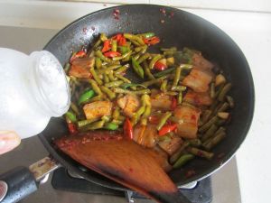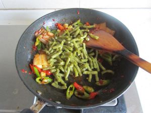 加入酸豆角继续翻炒;