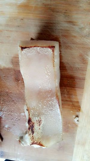 煎下表皮微焦即可,要小心,别焦了哦,然后拿出来,用刀刮下表皮,去毛,这样就很干净哦,做其他肉,也可以这样去毛哦