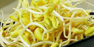 倒在黄豆芽上,放入炸过的辣椒和麻椒,烧150毫升热油,浇在上面。