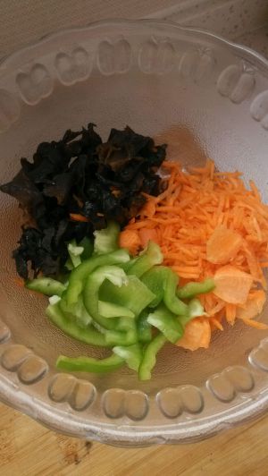 木耳,胡萝卜,青椒切丝备用(没有笋就用的青椒代替了)