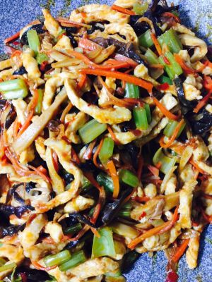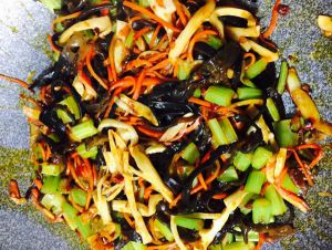 胡萝卜 芹菜 冬笋 木耳 葱 姜切丝蒜切片