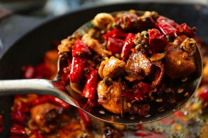 因为歌乐山辣子鸡肉是干的,所以接下来就是锻炼手臂肌肉的时刻了