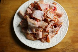 仔鸡洗净沥干切小块,切鸡翅和鸡腿的时候,先用刀背把鸡骨敲松再切,切好后沥干备用;