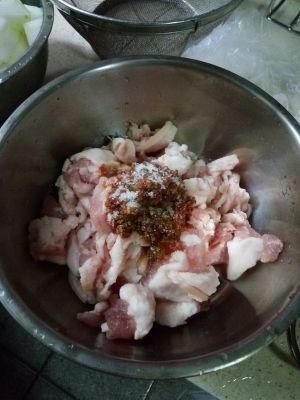 傻乎乎忘记拍图~将切好的五花肉片加入料酒、生抽、老抽、蚝油、黄豆酱、盐、糖、姜片~拌匀~腌制一小时