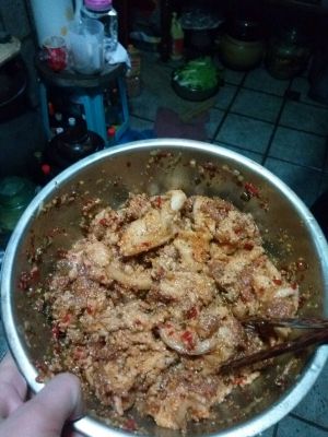 五花肉里加适量蒸肉粉,别太多了,再加豆瓣酱和食用油和好,(加食用油是为了肉嫩)土豆放下面铺好,五花肉放上面