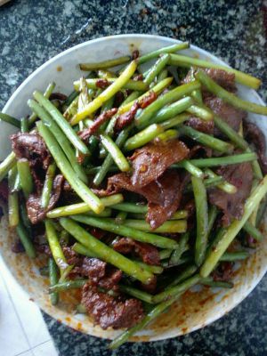 就把蒜苔和肉一起炒 放盐 味精 鸡精