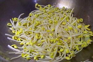 接着下豆芽,芹菜断生煮熟捞出倒盘底