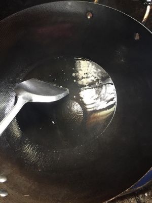 花生煎好了(一点都没有糊哦),后面倒入鸡胸肉时适量就可以了