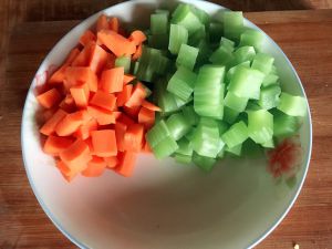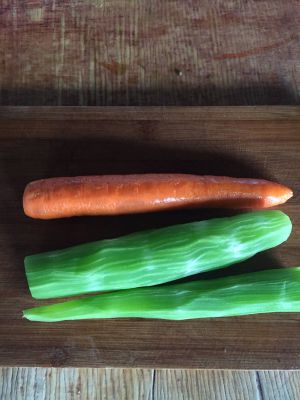 把胡萝卜和莴笋切丁(不要太小和鸡胸肉差不多就可以了)