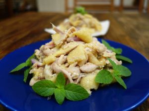 红葱头沙姜手撕鸡做好啦,鸡皮爽弹,鸡肉细嫩而有嚼头,回味绕梁,让人胃口大开!