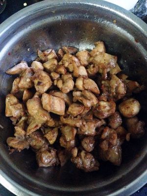 鸡洗干净后砍成小块,放料酒、盐、腌制备用。