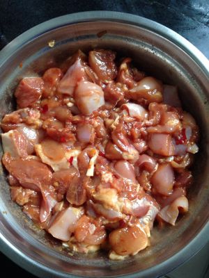 鸡块洗净,加盐、料酒、老抽、糖腌制4个小时。