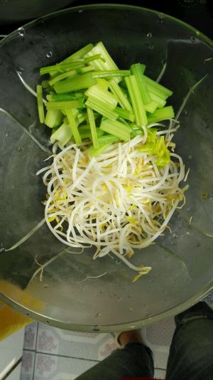 煮开后,放入肉片煮3分钟左右即可,依口味可加适量盐或酱油,把肉和汤一起倒入装有豆芽、芹菜的大碗中