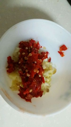 姜蒜切末。红剁椒也要切一下,更好入味。