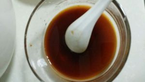大家可以看得到我的勺子。一勺香醋,一勺酱油。两勺白糖,一勺料酒。就调制成了我们要用的鱼香汁啦。