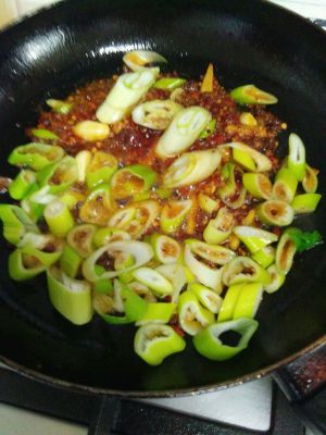 锅内倒入少许油,烧热,加入姜,蒜,大葱,豆瓣酱,干辣椒,花椒