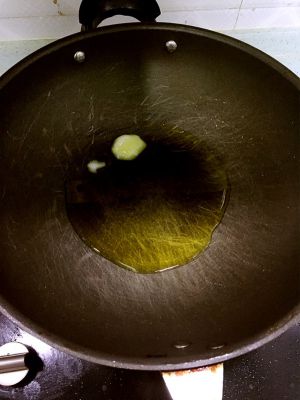 油锅倒入油,和老干妈和蒜!翻炒出香味