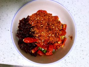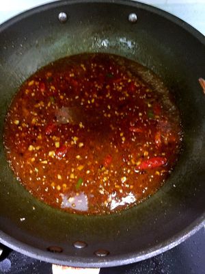 准备步骤:1.熬锅鸡汤,鸡骨熬的清汤即可;2.花椒粒下锅不放油干炒,至冒烟变色,取出凉凉,擀碎筛出花椒粉;3.用二荆条辣椒炸红油备用