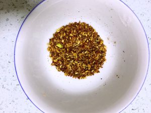 单独准备一些花椒粒在锅里炒熟,不要放油,直接干炒,火小一点,不要炒糊,麻味出来后取出,用擀面杖碾成碎沫备用