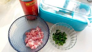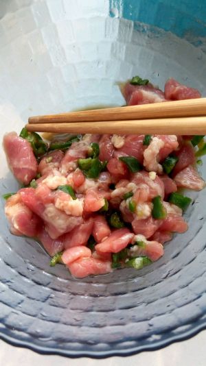 五花肉洗干净切成2厘米一片,加入料酒,姜末,生抽,盐,搅拌均匀,腌制半小时。