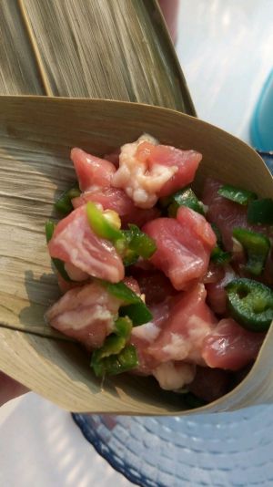 没有荷叶,用的苇叶,过热水清洗(消毒并防苇叶断裂)
