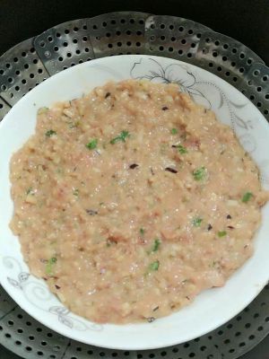 蒸肉粉拌匀,太干的话加点儿水。放置几分钟腌制。