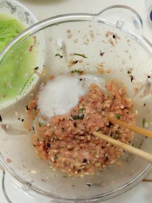 放一点香菜,放一个鸡蛋、生粉、米粉(大米洗净后晒干后磨成粉)酱油、食盐少许腌制5分钟,