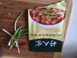 锅中放油,小火放入少许花椒,放好人家麻婆豆腐调料,按个人口味,我怕辣,放的少。爆香后放水,牛肉丁煮开。放入豆腐,将姜 、蒜放入锅内,大火煮至锅里少许汤后,加水淀粉勾欠,收汁时放点香葱,撒点花椒粉。