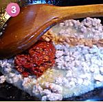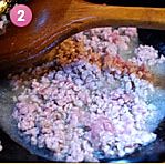 锅中倒入适量的炒菜油,油温约6成热的时候放入肉馅,中火炒散。