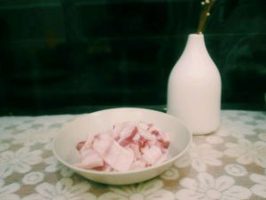 五花肉切成两指宽,刀背后的肉片!