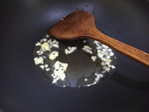 锅中放油,放入猪肉片炒至出油呈“灯盏窝”状时,放入剁细的郫县豆瓣炒香上色;
