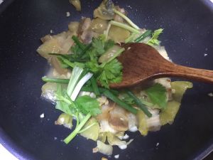 因为包心菜没什么水分,可以倒入些黄酒,翻炒一下后再焖一会,快出锅时候放入风味豆豉,再翻炒几下等翻匀了就可以出锅了。