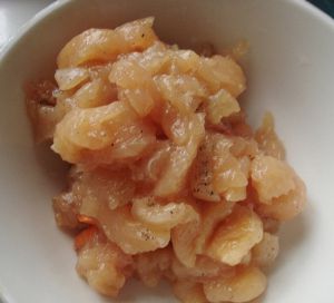 新鲜鸡肉切成块。