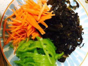 木耳胡萝卜、尖椒~切成丝