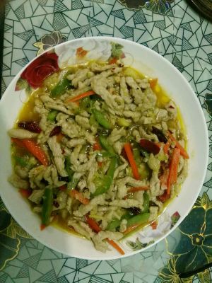 肉切丝抓点淀粉,汁里面放,水,糖,米醋,海鲜酱油,咸盐,淀粉。