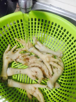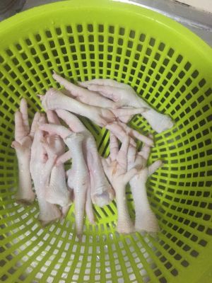 将鸡脚打理去除指甲,鸡脚掌中间黑色老皮去除